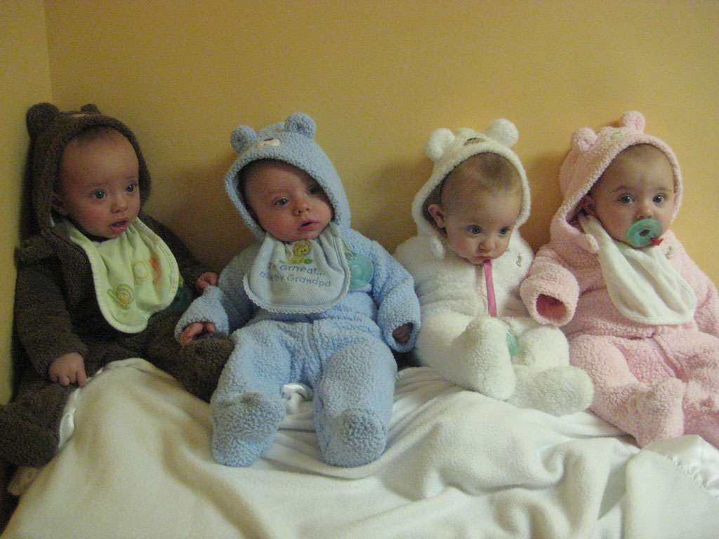 To make things more difficult, they got their first colds. Jackson had to go on an inhaler, but no one else did. It is almost comical when we try to comfort four crying babies. Sometimes Callie joins in just for good measure.
